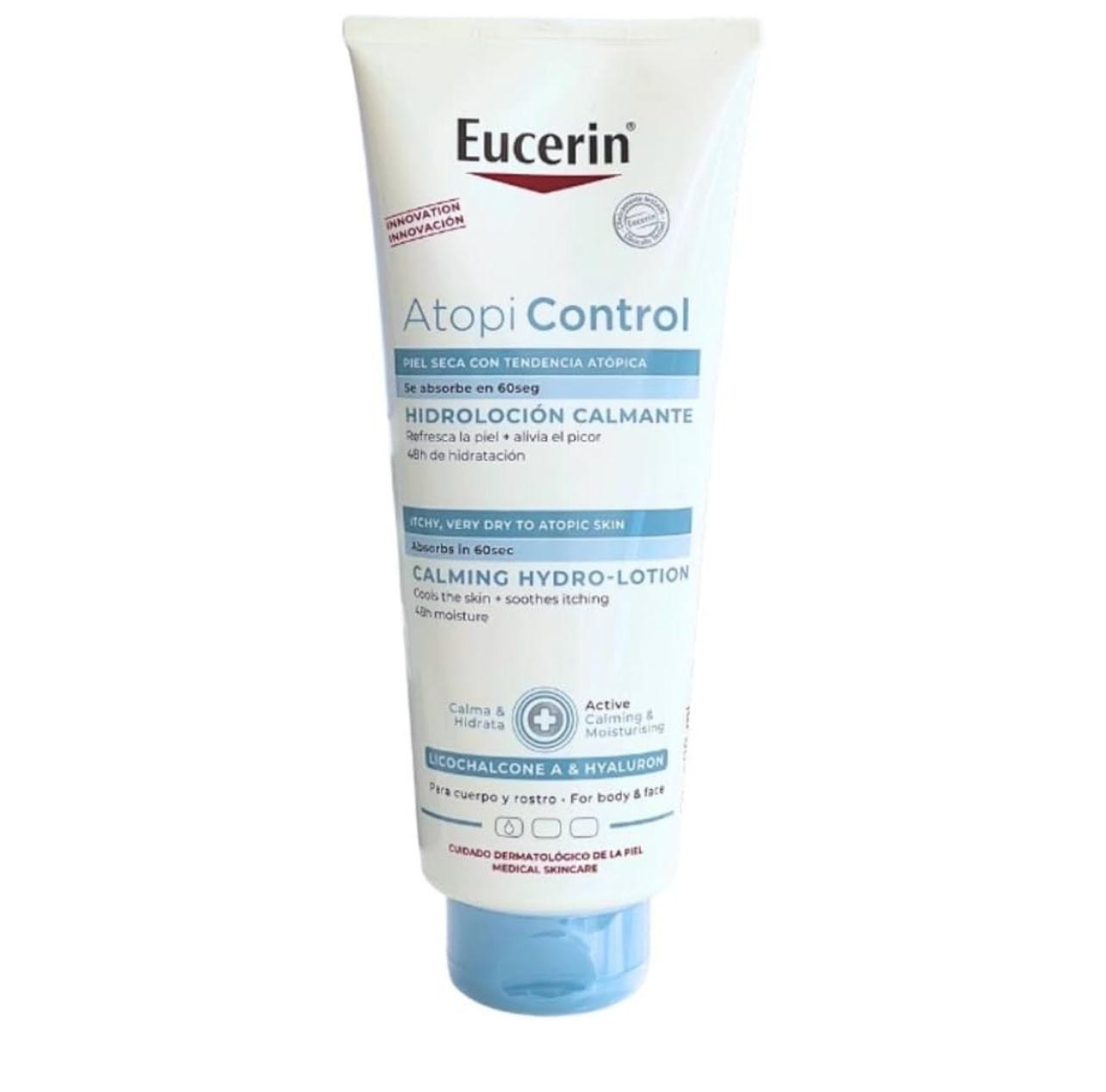 AtopiControl Hidroloción Calmante es un producto de cuidado básico sin perfume de uso diario que alivia el picor de forma inmediata, hidrata durante 48 h y regenera la barrera cutánea. La fórmula ultraligera se absorbe en 60 segundos y refresca la piel.